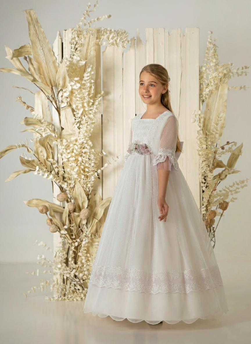 Vestido de comunión de tul topos A870